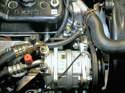 Un système de climatisation fonctionne en principe comme un réfrigérateur et comporte les composants principaux suivants : Compresseur, actionné par le vilebrequin Support compresseur Condenseur (échangeur de chaleur), installe devant le radiateur Ventilateur de condenseur Filtre-déshydrateur, pour extraire l'humidité éventuellement présente et les impuretés dans le système Évaporateur, installé dans ou devant le boîtier du chauffage Ventilateur Vanne d'expansion, contrôle le débit du réfrigérant. Tuyaux développés spécialement pour R134a, dispositifs de sécurité et commandes