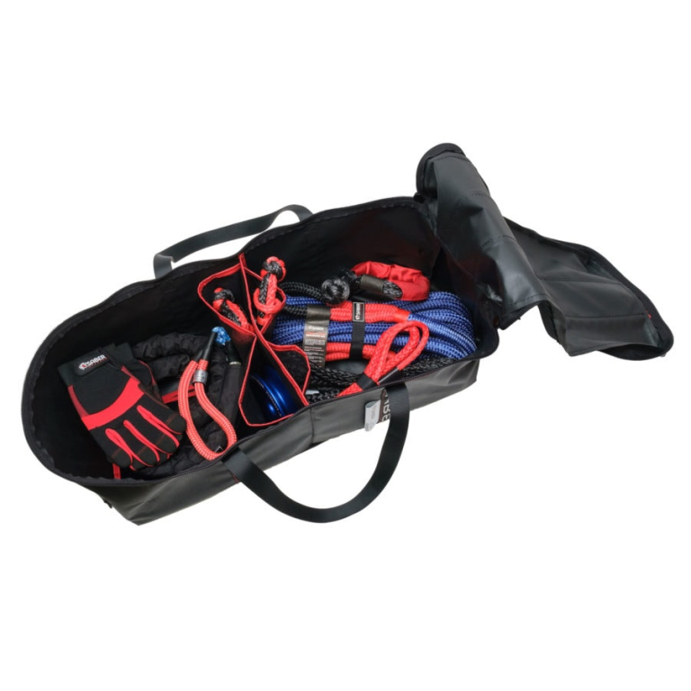 Le kit de récupération ultime 8K est l'un des kits de récupération les plus sûrs du marché actuel. D'une capacité de charge de 8 200 kg, il comprend la corde et le sac de récupération cinétique, deux manilles souples HDX SabePro de 12 000 kg, un protecteur de tronc d'arbre de 5 m de 13 000 kg, une rallonge de treuil SaberPro noire de 9 500 kg avec œillets liés, un anneau et un sac de récupération bleus Ezy-Glide MBS de 12 000 kg, une manille souple SaberPro de 18 000 kg avec gaine, un amortisseur de treuil, des gants de récupération et un sac d'équipement de récupération ultime.