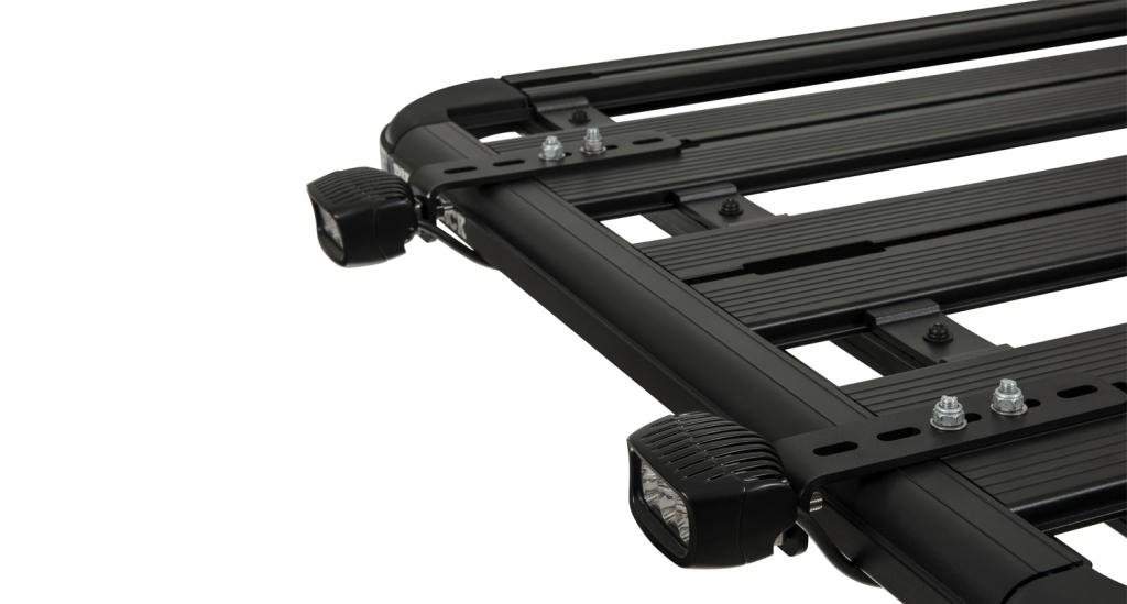 Permet d’installer de petits projecteurs ou lampes électriques portatives sur un système Rhino-Rack Pioneer.