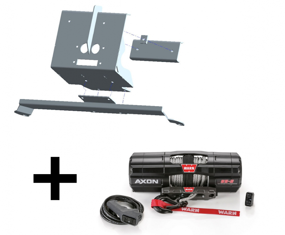 Platine vendue avec un treuil Warn Axon 55-S, corde plasma et écubier en aluminium