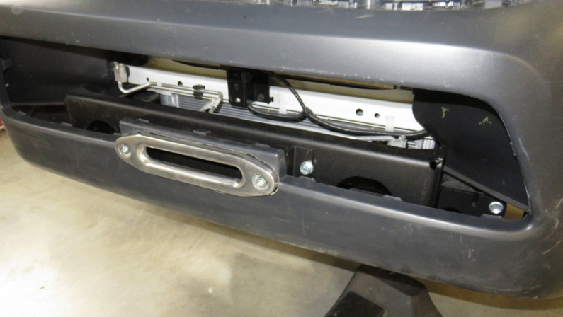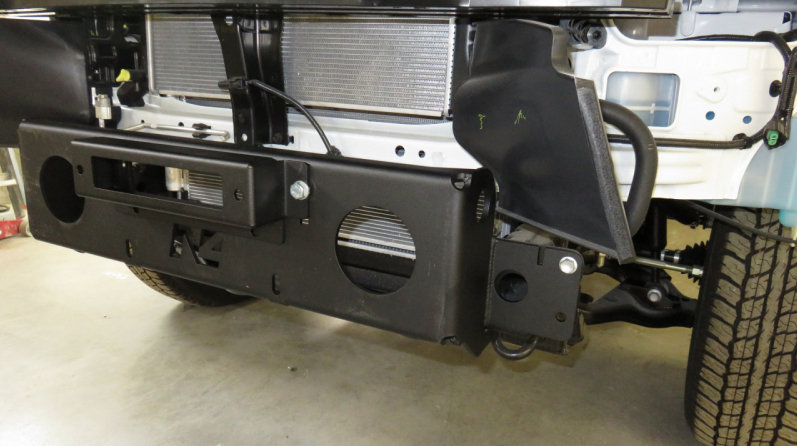 Permet le montage des treuils électriques les plus courant (3.6T à 5.4T) avec boitier relais séparé. Juste une découpe du Pare-chocs est nécessaire pour le passage du guide câble ou de l'écubier.