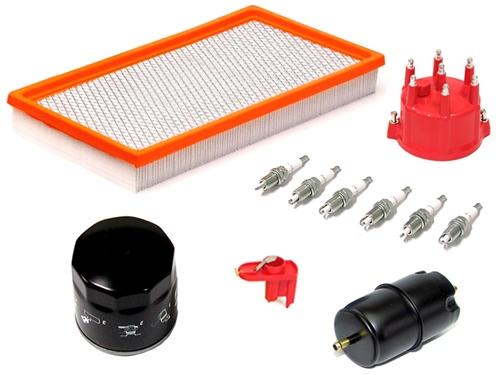 Pour JEEP CHEROKEE XJ 4.0L de 1991 à 1993. Comprenant : bougies d’allumage, tête et doigt de distributeur, filtre à air, filtre à carburant et filtre à huile.