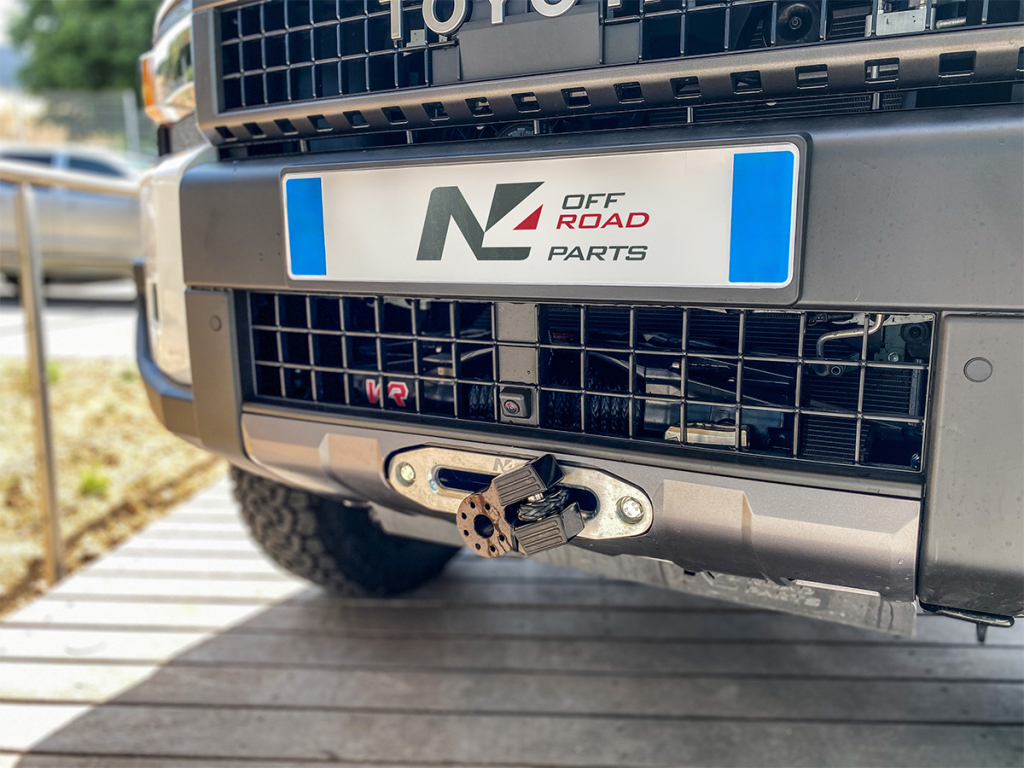 La platine de treuil N4-Offroad KMT046 combine solidité, discrétion et efficacité, permettant aux propriétaires de Land Cruiser 250 de bénéficier d'un système de treuillage complet sans modifier le style ou la structure de leur véhicule.