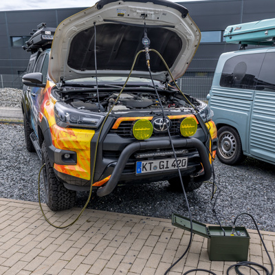 Le système d'équilibrage de pression automatique, Indeflate, est un dispositif innovant permettant de gonfler ou de dégonfler simultanément deux à quatre pneus tout en égalisant automatiquement la pression entre eux une fois qu'ils sont connectés. Fabriqué en Afrique du Sud, cet appareil a fait ses preuves en résistant aux rigueurs de la nature et aux voyages à travers les terrains les plus hostiles.