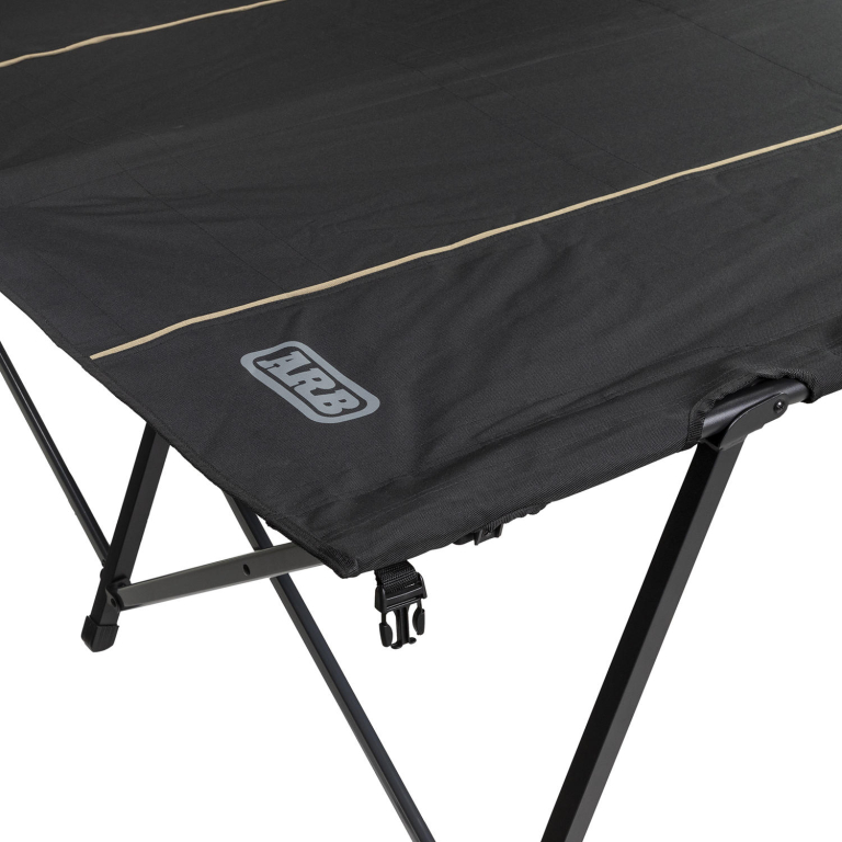 Le Lit de Camp ARB Double Swag Stretcher est l'accessoire parfait pour vous accompagner en offrant un sommeil surélevé lors de vos déplacements. Conçu spécifiquement pour s'adapter au ARB Skydome Double Swag, il présente une structure en acier noir robuste avec des traverses contrastées en charbon et une peau en polyester 600D résistante, agrémentée de bordures beige pour un attrait visuel supplémentaire. Des boucles intégrées maintiennent fermement le lit de camp lorsqu'il est plié.