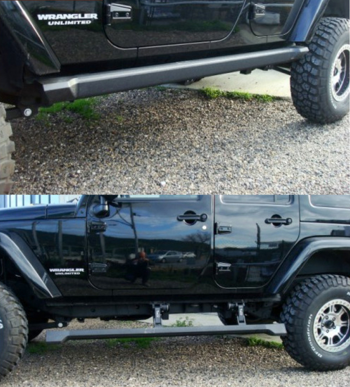 Le design moderne, la longueur et la position une fois rabaissée de ces marchepieds sont parfaitement adaptés à la Jeep Wrangler JK.