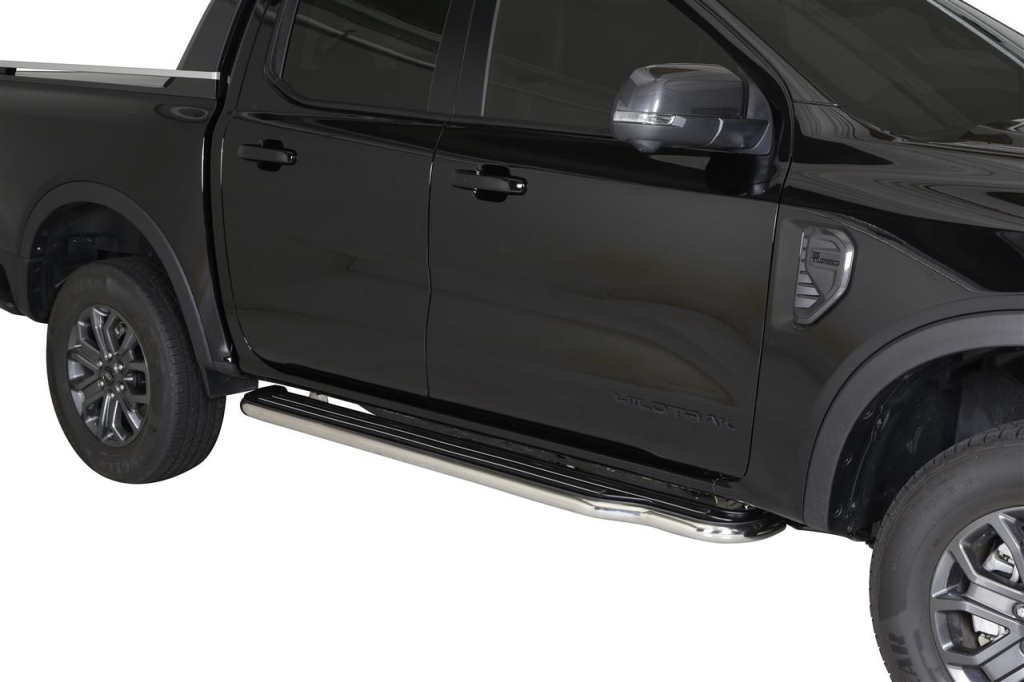 Les Marche-Pieds Plats Ø50 en version thermolaquée noire sont l'accessoire idéal pour votre Ford Ranger 2012/2022, ainsi que pour les modèles Ford Ranger XLT, Limited, Wildtrak 2023+ et Ford Ranger Raptor 2023+ Double Cabine. Découvrez leurs caractéristiques exceptionnelles.