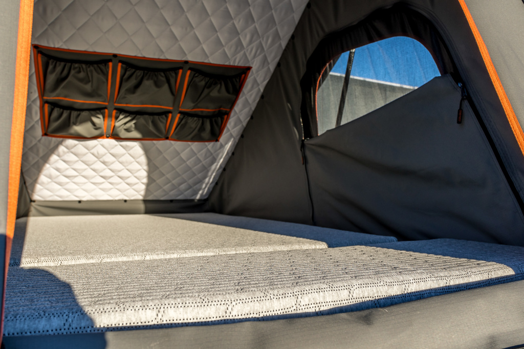 Il convient de noter que l'utilisation de ce matelas dans la tente de toit réduit l'espace disponible à l'intérieur de la tente, ce qui signifie qu'il y a moins de place pour les équipements tels que les échelles ou la literie (Il faut en tenir compte lors de l'ouverture et la fermeture de la tente).