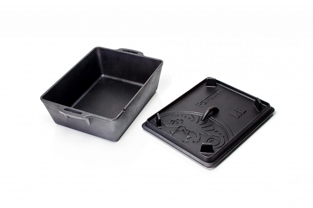 Fabriqué en fonte, le moule à gratin fait preuve d’une excellente conduction et conservation de la chaleur. Que vous l’utilisiez sur un feu ouvert et répartissiez des briquettes sur le couvercle ou que vous préférez cuisiner à la maison : la chaleur ambiante exceptionnelle convainc aussi bien au four à la maison que pour cuisiner en plein air. Grâce à sa surface pré-traitée (culottée), vous pouvez utiliser le moule à gratin de suite. Avec le double de la contenance du Moule à pain Petromax k4, vous pouvez maintenant nourrir aussi sans problème un grand nombre d’invités avec le k8.