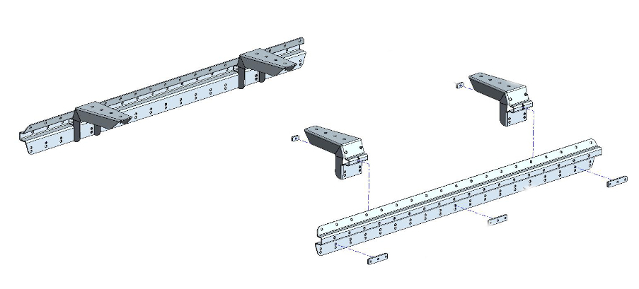 Le Système Multi Rack est en acier recouvert de peinture époxy noire pour une meilleure protection contre la corrosion. Il nécessite le perçage du retour intérieur de la benne afin de pouvoir être monté.