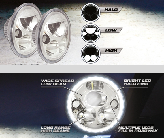 ces optiques se montent en remplacement des optiques d'origines halogènes qui équipent tous les véhicules à feux ronds 7 pouces (exemples : Jeep, Toyota, Suzuki, Mitsubishi, ...)