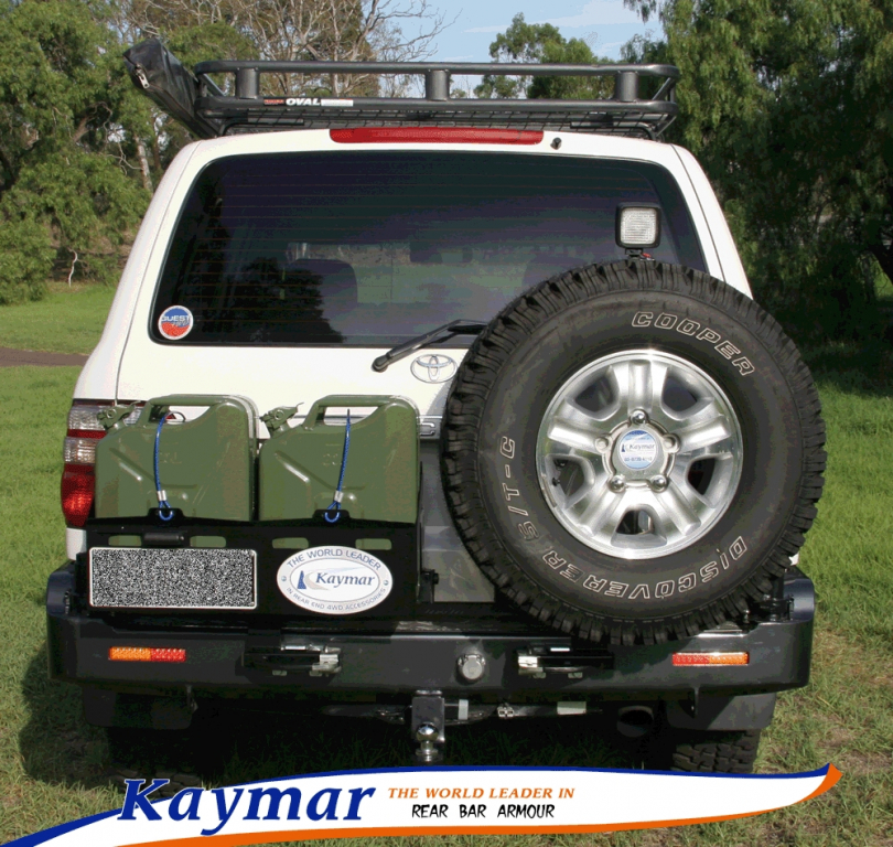 Pare choc arrières australien KAYMAR pour 4X4 pouvant recevoir un support roue de secours avec un montage au choix à droite ou à gauche.