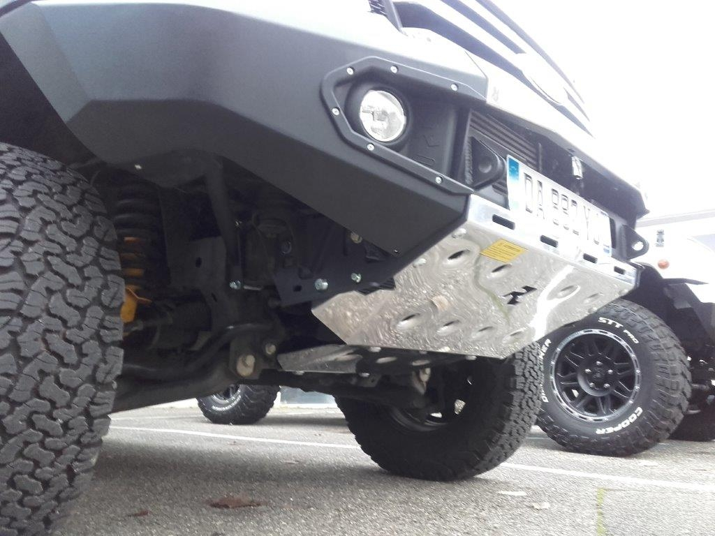 - fourni avec un blindage avant en aluminium 5 mm parfaitement adapté au pare choc et protègeant l'avant de votre véhicule