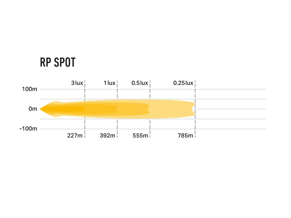 Le RP Spot est un éclairage LED « tout-terrain » conçu pour la performance et la durabilité. Dotée de 4 LED premium de 20 W, la lampe produit 8 940 lumens bruts qui se combinent avec l'optique « boost » ultra-réfléchissante et métallisée sous vide spécialement conçue et conçue pour fournir de la lumière sur une distance impressionnante (1 lux à 392 m), mais toujours avec une répartition de la lumière gauche/droite de 20 degrés.