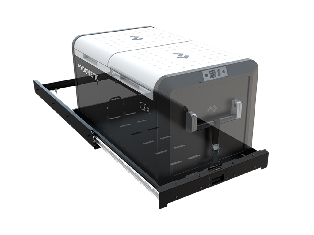 Le système de glissières fait en sorte que vous ayez un accès facile et rapide à votre frigo ou à un équipement lourd, et tout ceci en utilisant un espace minimal.