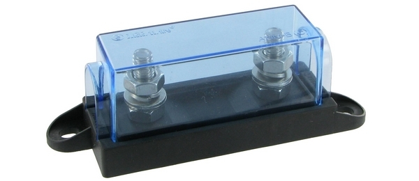 Caractéristiques du porte-fusible méga type 3870 : - Couvercle translucide bleuté - Livré avec écrous et rondelles - Bornes M8 - 40A à 200A