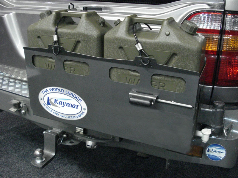 Le porte jerrycan double gauche Kaymar est conçu pour transporter jusqu'à 40 litres avec deux jerrycans. Il comprend notre mécanisme de verrouillage unique au centre du pare choc qui continue de fonctionner dans la poussière et la boue. Le porte jerrycan utilise nos vérins à gaz de haute qualité et éprouvés, ainsi que nos poignées Kaymar en caoutchouc.