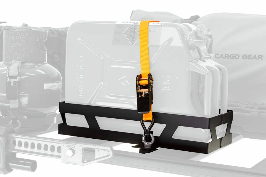 • Porte-jerrican fourni avec des œillets d’arrimage et des sangles