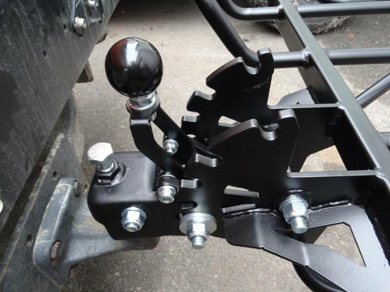 Le panier utilise une solution spéciale qui vous permet de monter et de descendre librement des pentes abruptes sans craindre qu'il ne soit arraché de la barre d'attelage. Le panier monte et revient à sa position après avoir surmonté un obstacle.
