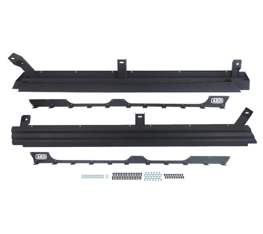 - Un support de fixation fabriqué à partir de tôle d'acier découpé au laser de 3mm, les protections latérales se fixent au châssis du véhicule pour répartir le poids des protections de bas de caisse équitablement sur l’ensemble du véhicule.