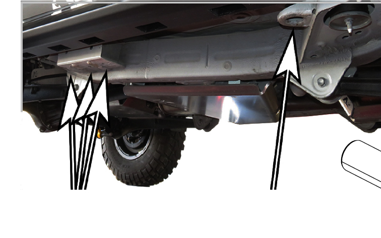 au châssis du véhicule. Trois points de montage sont utilisés pour répartir le poids des protections de bas de caisse équitablement sur l’ensemble du véhicule.