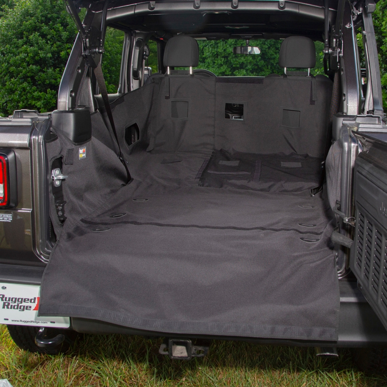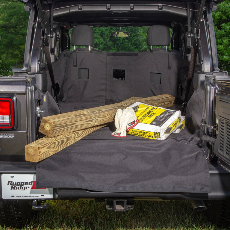 La housse de coffre offre une protection complète de l'espace utile arrière de votre Jeep Wrangler JL, en préservant l'intégrité de votre intérieur tout au long de votre utilisation quotidienne, protégeant vos tapis et vos garnitures en plastique des dommages, des égratignures, des griffes d'animaux domestiques, de la saleté et d'autres débris.