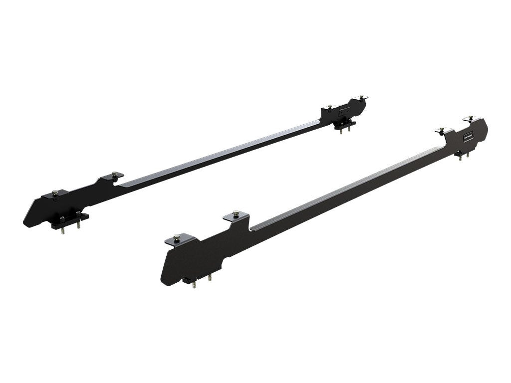 Cette paire de rails, avec des pieds de montage intégrés, est utilisée pour fixer la galerie de toit du Front Runner Slimline II au Toyota 4runner en utilisant les points de montage existants du véhicule.
