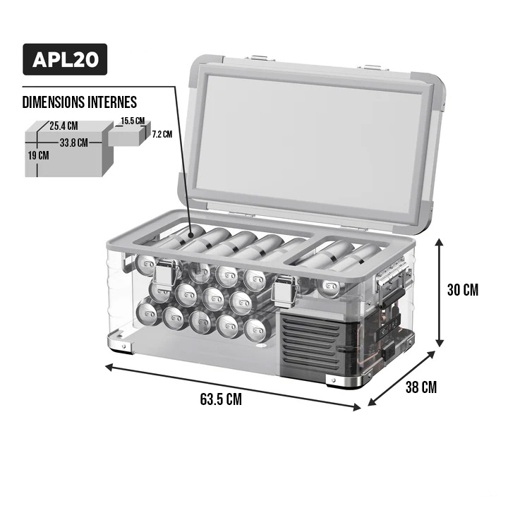La capacité de 20 litres vous permet de stocker une grande quantité de nourriture et de boissons. Que ce soit pour un long week-end en plein air ou comme réfrigérateur supplémentaire à la maison, cette glacière est prête à relever tous les défis.