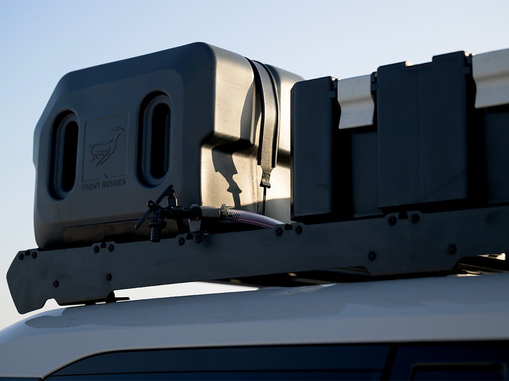 Le réservoir d'eau Pro 42l avec système de montage est un excellent moyen de transporter de l'eau supplémentaire sur votre Front Runner Roof Rack. Il vous permettra également de ne pas avoir soif lors de votre prochaine aventure. Il suffit de tourner le robinet verrouillable pour ouvrir le réservoir et avoir de l'eau. Le support de montage est facile à enlever et n'interfère pas avec le fonctionnement du bouchon.