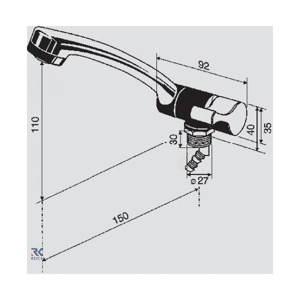 Caractéristiques techniques du robinet mitigeur avec contacteur électrique REICH pour fourgon et camping-car :