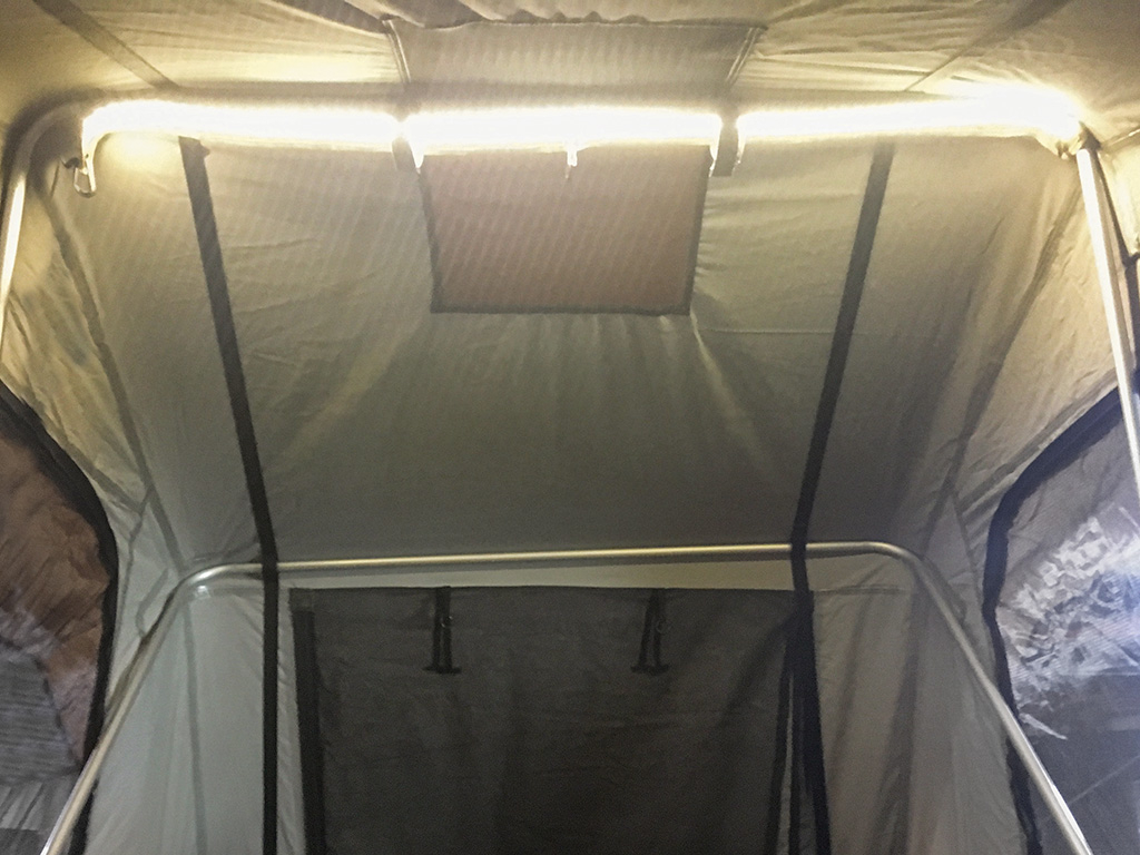 Utilisez l'interrupteur pratique du gradateur pour passer d'un éclairage utilitaire brillant à un éclairage plus chaud et plus intime à l'intérieur de votre tente ou de votre auvent.