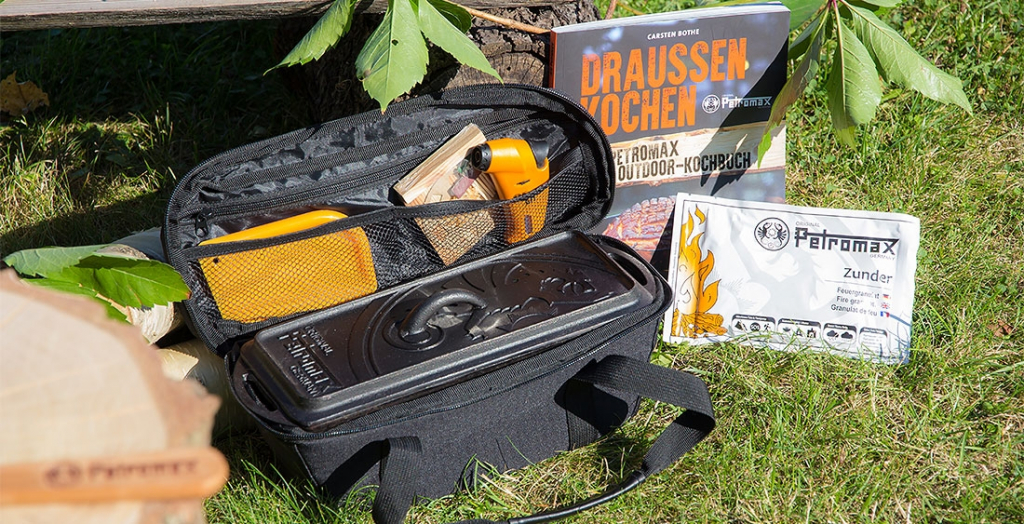 Le couvercle du sac abrite une poche spacieuse à fermeture éclair ainsi qu’une pochette en filet. Les accessoires pratiques tels que le Zunder Petromax, le chalumeau à gaz hf1 ou hf2 Petromax peuvent alors être entreposés et transportés en toute simplicité. Sur la partie supérieure du sac est brodé le logo Petromax, qui est depuis toujours synonyme d'excellente qualité et fait du sac de transport un accessoire indispensable pour votre moule à pain k4.
