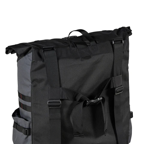 Comprimez l'espace non utilisé en enroulant le tissu et fermez-le à l'aide de la sangle adaptée.