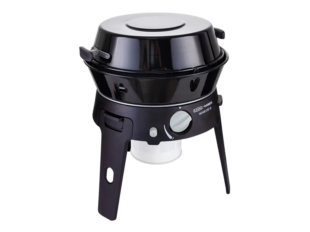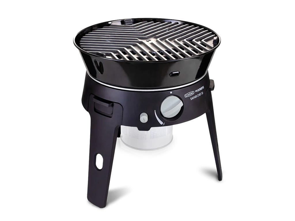 Ce réchaud portable à brûleur unique est parfait pour les aventures en véhicule et le camping, car ses pieds pliables permettent un rangement compact. La surface de cuisson de 30 cm de diamètre offre trois surfaces de cuisson différentes : barbecue, gril ou friture, tandis que le couvercle fait office de casserole. Le Safari Chef 30 Lite HP Combo offre la meilleure solution de cuisson compacte pour le camping.