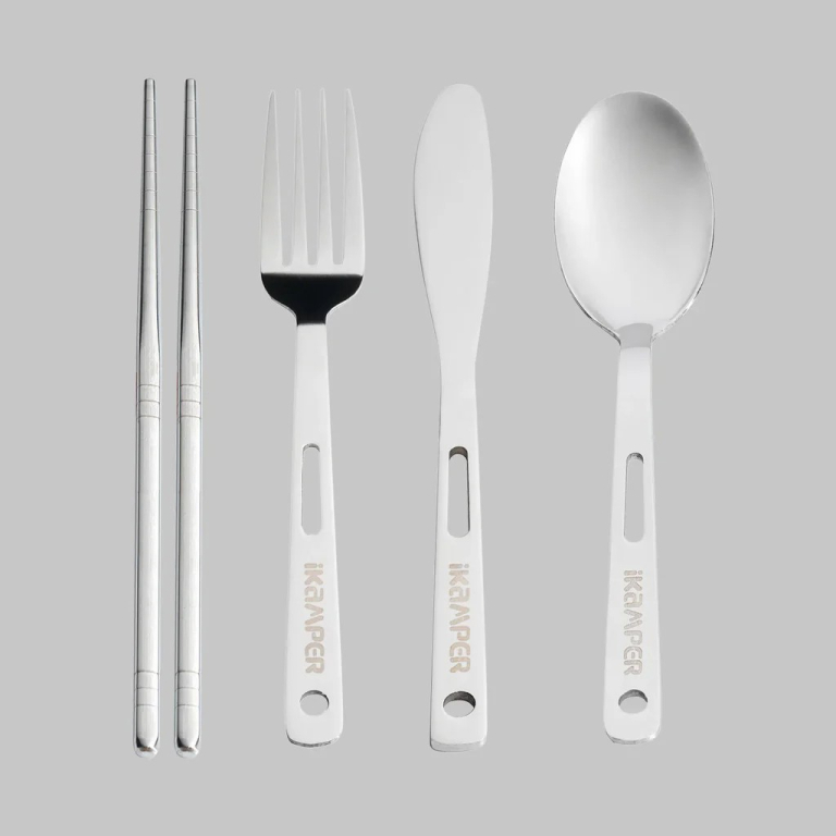 Ce magnifique set de couverts pour 4 personnes est parfait pour vous accompagner lors de tous vos déplacements en bivouac ou camping. Les 13 couverts, dont une paire de baguettes chinoises, se rangent facilement dans une pochette en polyester où ils seront protégé dans un minimum de de volume.