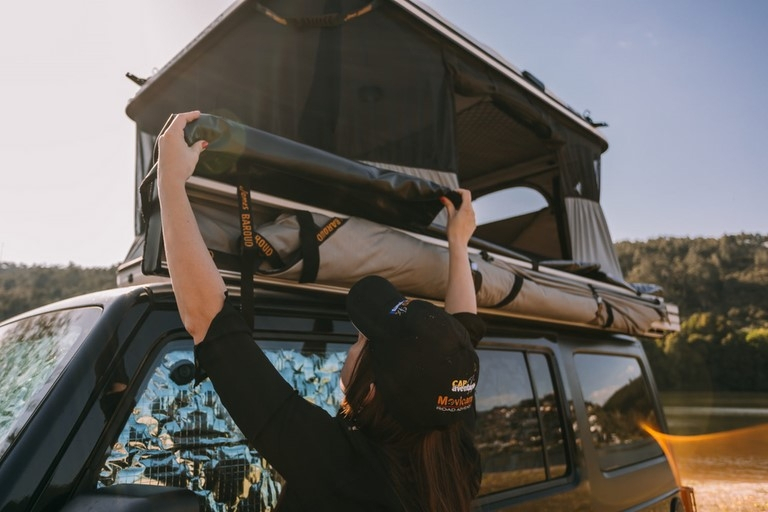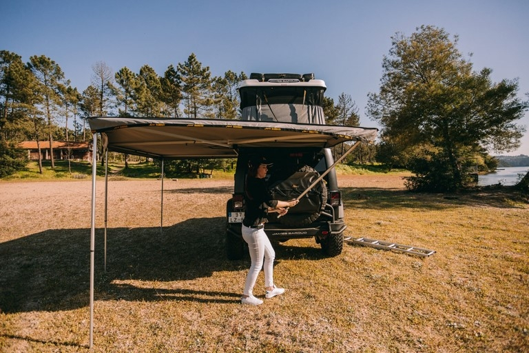 Le store James Baroud Falcon 250, est un store autoportant de 270° avec un passage tunnel intégré pour l'accès à votre tente James Baroud.