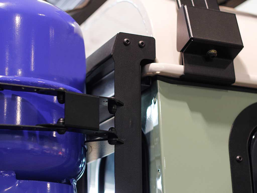 Transportez et rangez votre bouteille de gaz/propane sur votre Land Rover 90 110 grâce à ce support de bouteille de gaz simple en acier inoxydable 3CR12, monté sur gouttière.
