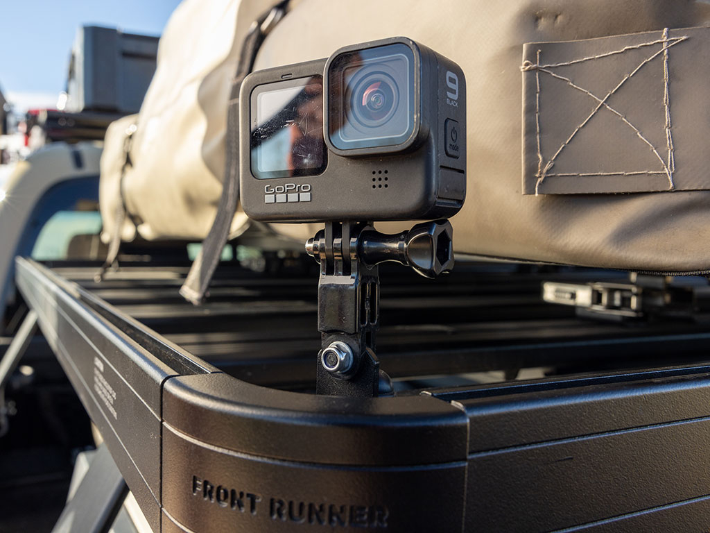 Permet d’ajuster votre caméra dans l’angle désiré en utilisant le bras pivot (pas inclus) qui est attaché au support de galerie de Front Runner.