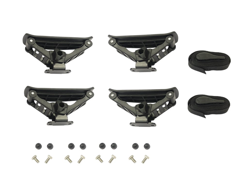 Transportez votre kayak, votre creek boat ou votre surfski avec ce berceau à bateau unique. Ce support de bateau a été conçu pour s'adapter à une variété de formes et de tailles de coques et est idéal pour les planches plus grandes comme les SUP et les planches à voile également. Ce support pour kayak comporte quatre supports, chacun doté d'une selle pivotante indépendante et d'un levier de réglage de l'angle. Ses coussinets flexibles protègent la coque et il est livré avec deux sangles d'arrimage dotées de boucles de protection.