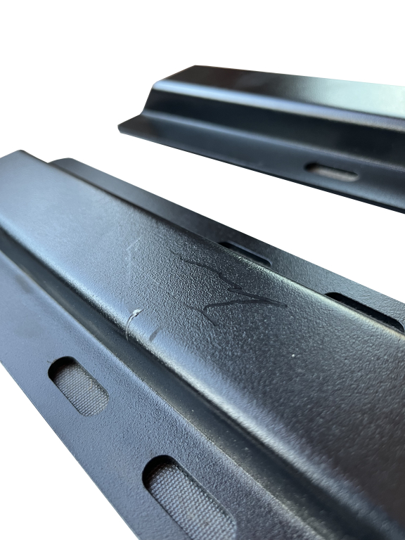 Utilisez ces supports lorsque les bords de la coque rigide sont installés avec le Kit de Raccord Rapide pour tente de toit de Front Runner et que les profiles latéraux ne sont pas supportés par la galerie Front Runner.