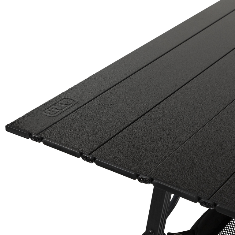 Avec son cadre en aluminium noir et son plateau noir charbon, elle est en plus très agréable à l’œil. Autre point important pour les aventuriers à la recherche de praticité, une fois rangée dans son sac elle prend très peu de place malgré son plateau de 114x70cm.