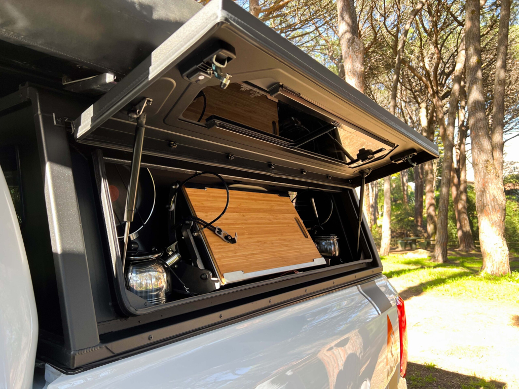 La tablette s'adapte sur les coffres de rangement de 1250 et 750 mm afin que pour le coffre du Toyota Land Cruiser (coffre vendu séparément)