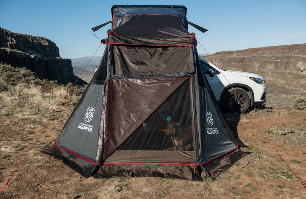 La tente annexe vous permet de gagner de l'espace de vie pour un plus grand confort. Elle est facile à mettre en place, et se fixe directement à votre Skycamp, Skycamp Mini ou X-Cover. La construction 100% étanche et les moustiquaires sur toutes les ouvertures en font un accessoire parfait pour vos picnics à l'ombre ou sous la pluie.