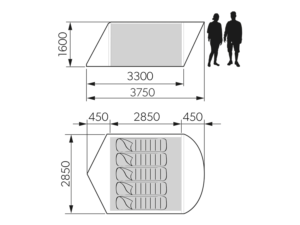 3750mm (147.6'') L x 2850mm (112.2'') l x 1600mm (63'') H