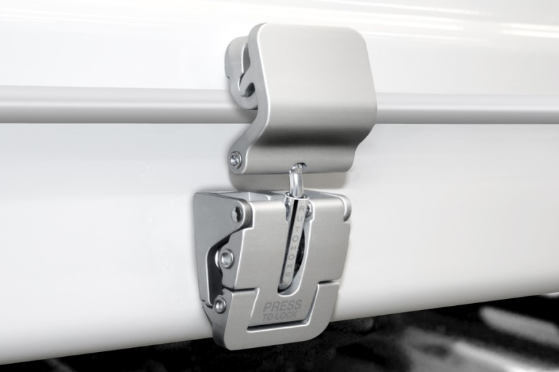 • COQUES AVEC OUVERTURE A VERINS : la force des vérins a été accentuée afin de mieux tendre le tissu de la tente à l’ouverture. De plus, la fermeture est plus facile grâce à la nouvelle disposition des bras et vérins.