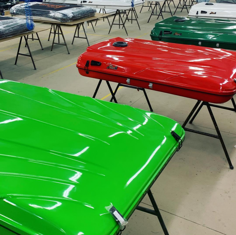 Fabriquées en polyester armé de fibre de verre la coque inférieure est pourvue d'emplacements prévus pour le maintien de l’échelle en aluminium. Cette échelle, ergonomique et coulissante afin de s'adapter à la taille du véhicule, est livrée avec sa housse de rangement (voir photo plus bas).