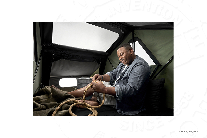 Après avoir retiré la capote, la tente s’ouvre en trois secondes, sans autre manoeuvre, grâce à l’échelle qui permet de déployer totalement la tente.