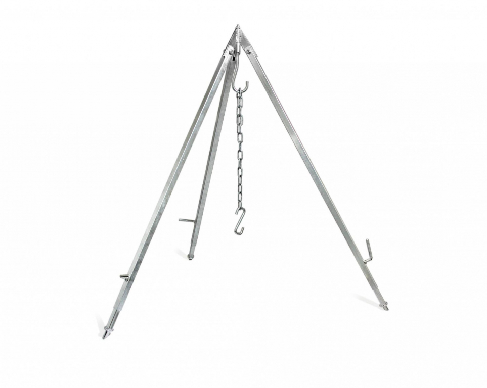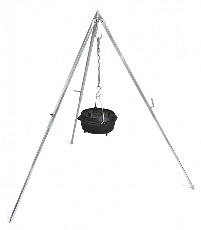 Le trépied de suspension Petromax permet de perfectionner la cuisine en plein air. On peut suspendre simplement et en toute sécurité au crochet un gril ou la marmite Petromax. Grâce à sa chaîne réglable en hauteur, la cuisine sur feu devient une expérience particulièrement agréable. Les extrémités biseautées assurent un maintien stable du trépied sur différents types de sols. Chaque pied est de plus réglable en hauteur et en continu afin d’équilibrer facilement le trépied lorsque la surface du sol est inégale.