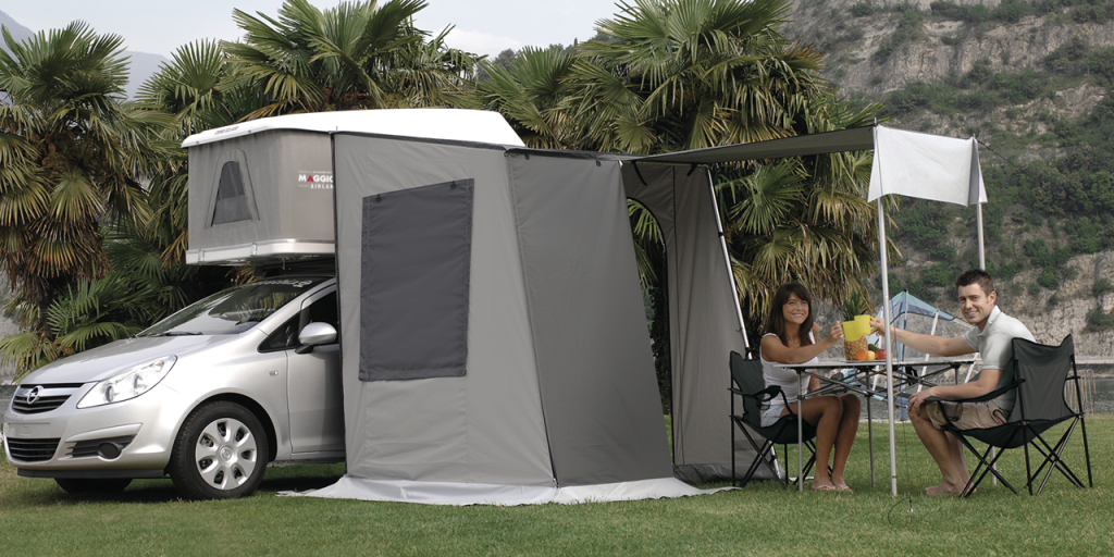 Disposer d'une véranda indépendante signifie créer un espace supplémentaire très pratique pour mieux profiter des vacances: un espace parfait pour se détendre à l'abri de la pluie et du soleil, pour cuisiner et prendre ses repas, pour ranger des équipements sportifs ou de camping, et pour toutes les autres nécessités de la vie en plein air. Elle permet également de disposer de places supplémentaires pour dormir et d’assurer plus d'intimité, si nécessaire. La véranda est une structure indépendante et structurellement autonome : ainsi, elle peut rester installée sur place (elle reste debout toute seule) lorsque l'on souhaite se déplacer momentanément avec l'auto. L'équipement placé à l'intérieur reste à l'abri et protégé des regards indiscrets et des intempéries : en effet, elle peut être fermée des quatre côtés. Grâce la véranda, le camping devient moins dépendant de l'auto. Par exemple, faire des courses ou sortir le soir pour aller dîner n'est plus un souci. Il est de même pour faire des excursions ou des immersions. Même si l'on souhaite replier la Maggiolina, la véranda peut rester installée. Par conséquent, il n'y a plus aucun besoin de toujours ranger tout l'équipement dans le coffre de la voiture. La fiabilité du produit est en parfaite syntonie avec la haute qualité Autohome : en effet, elle se base sur des mâts autoporteurs très robustes en aluminium qui permettent d'utiliser la véranda tant associée à la tente de toit que de manière indépendante, comme une véritable tente. Grâce à ces principes de fonctionnalité, la « Véranda » est devenue un autre grand succès d'Autohome.